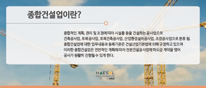 오늘은 종합건설업에 대해서 안내 드리려고 합니다.